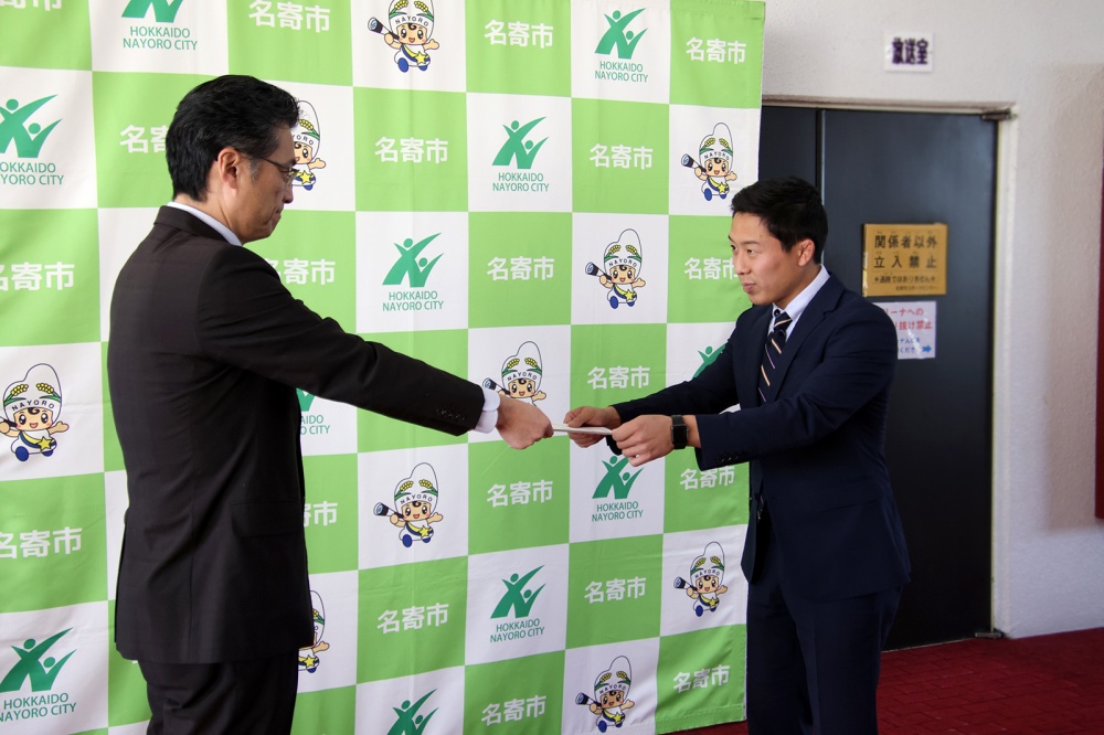 「名寄市のスポーツ振興におけるスポーツトレーナー人材」として、11月10日から地域おこし協力隊に山﨑達哉さんが着任しました。同日委嘱状交付式も行われています。