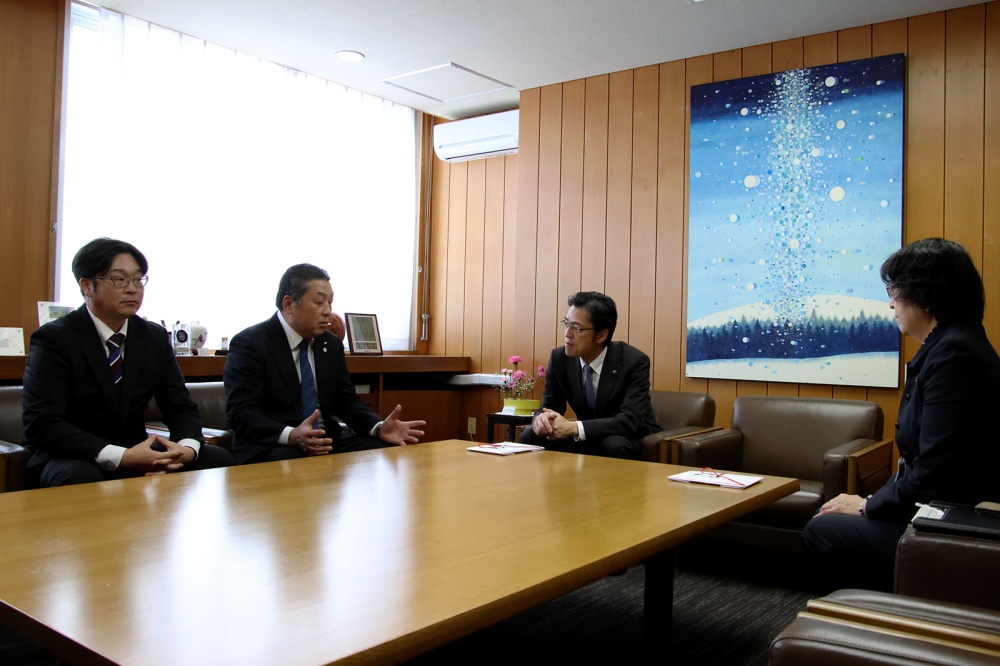 11月18日、道北なよろ農業協同組合村上清代表理事組合長・名寄市もち米生産組合横山圭太組合長が加藤市長の元を訪れ、目録を手渡しました。