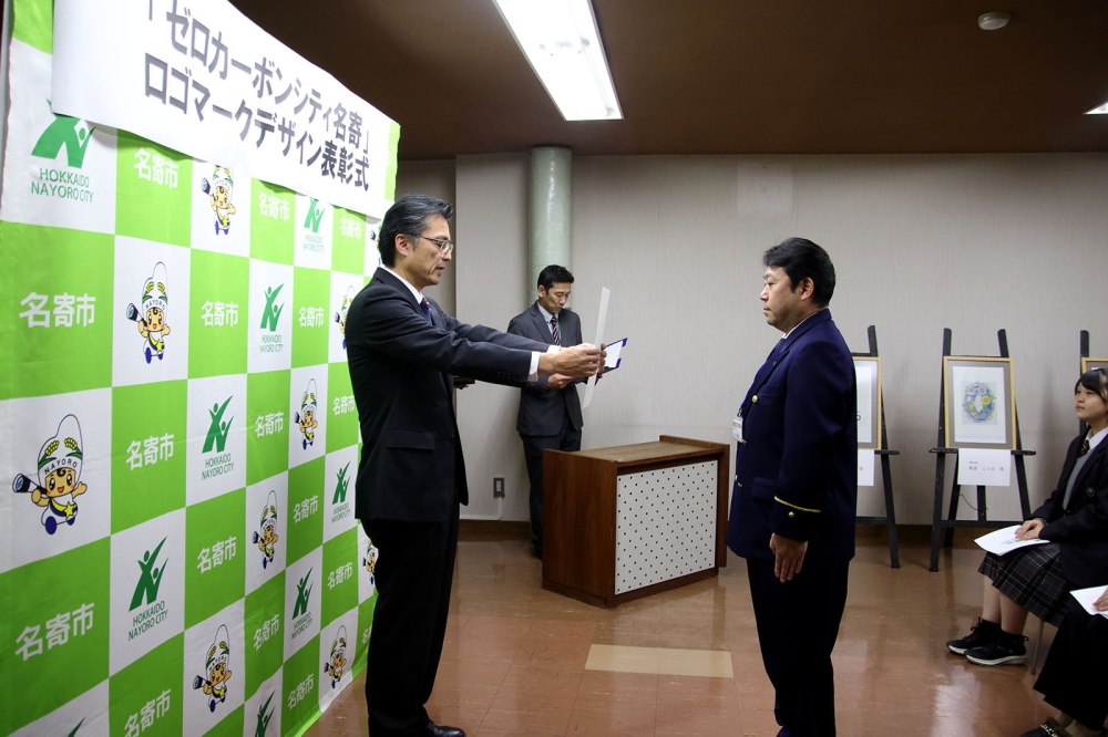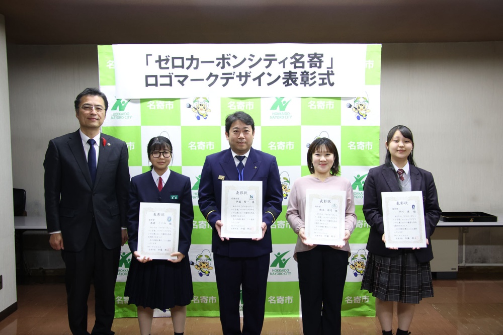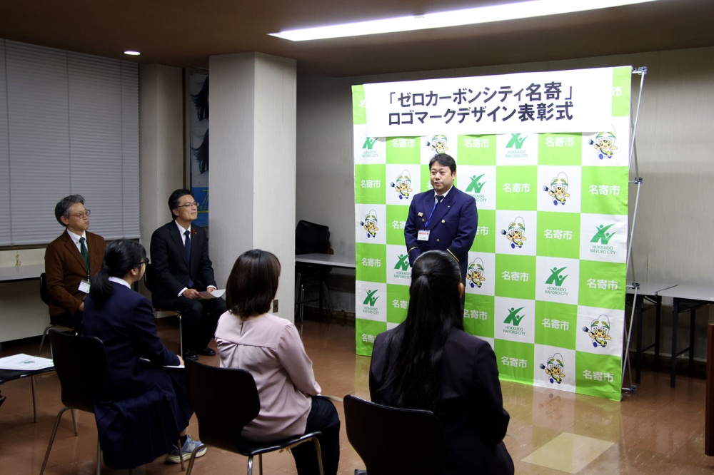 加藤市長は「どの作品も名寄市の特色を活かした素晴らしいデザインで感銘を受けた。名寄市に住むすべての人で脱炭素化に向けて取り組んでいくために、シンボルとなるロゴマークデザイン、ゼロカーボンに関する興味関心を深め、意識の醸成を図るために広く周知し活用していく。みなさんも無理のない範囲でゼロカーボンの取り組みを実践してほしい。ゼロカーボンシティの実現に向け、共に取り組みましょう。」と感謝を伝えました。