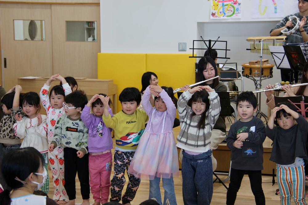 認定こども園あいあいで園児たちに音楽の楽しさを届ける「あいあいファンタジー」が開催され、名寄吹奏楽団による演奏会が行われました。