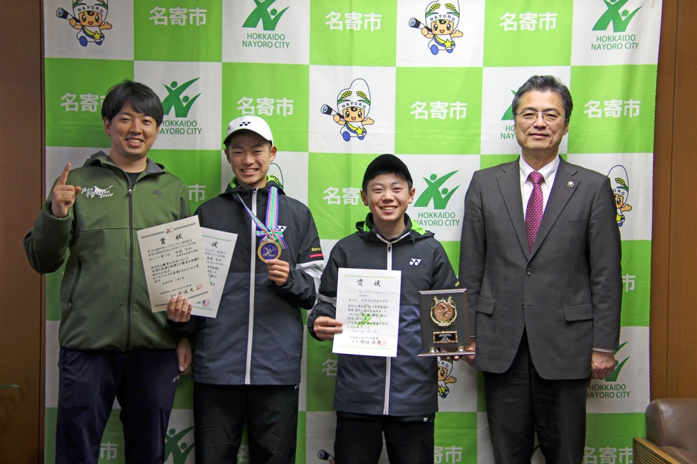 市長は「日頃の努力の成果が実を結び、大変誇らしく思います。全国大会では北海道代表として堂々とプレーし、名寄の名を全国に広めてください」と激励しました。